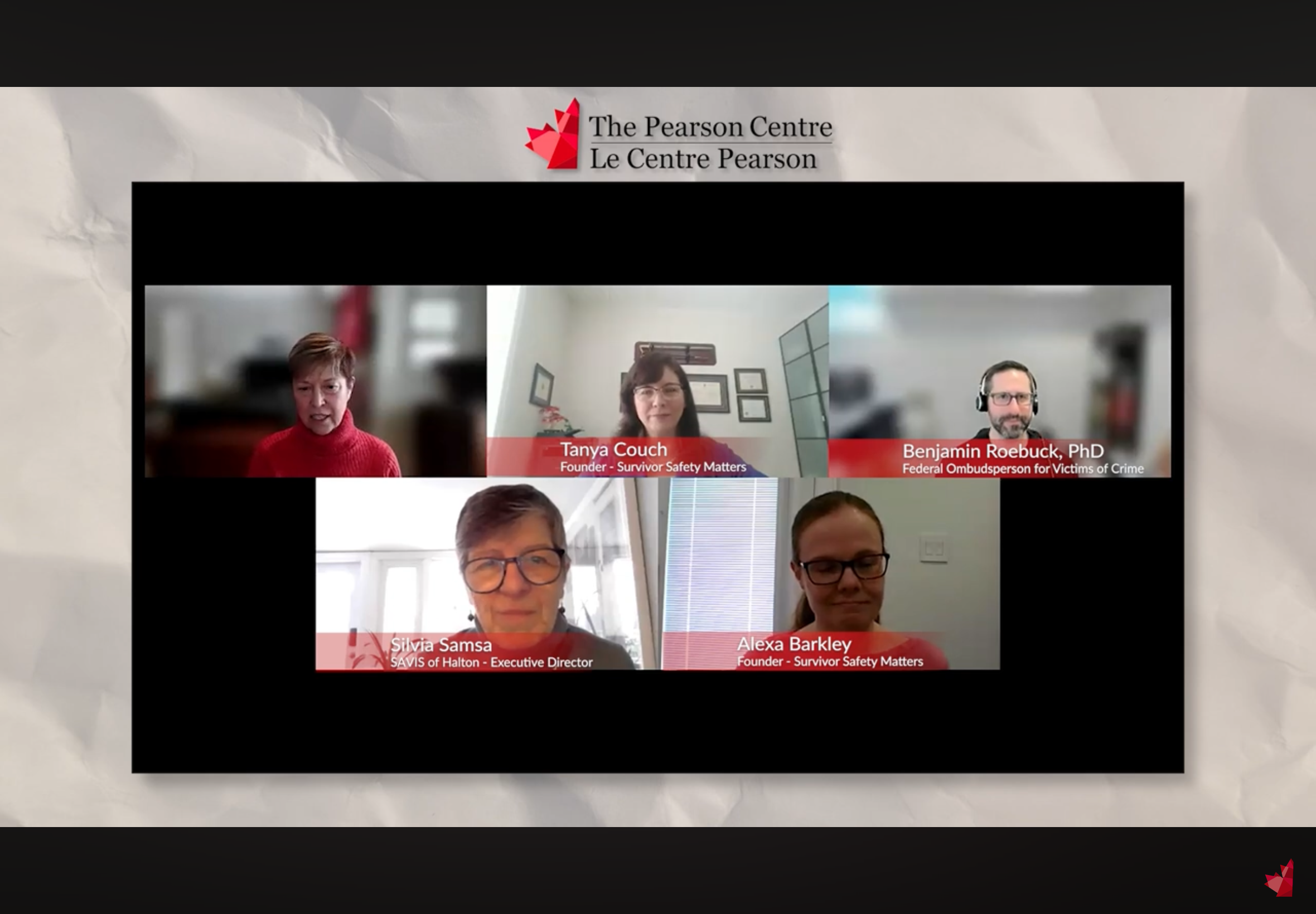 Thank you to Pam Damoff and The Pearson Centre for this interview with Dr. Ben Roebuck (OFOVC), Silvia Samsa (SAVIS of Halton) and Alexa Barkley & Tanya Couch (Survivor Safety Matters).